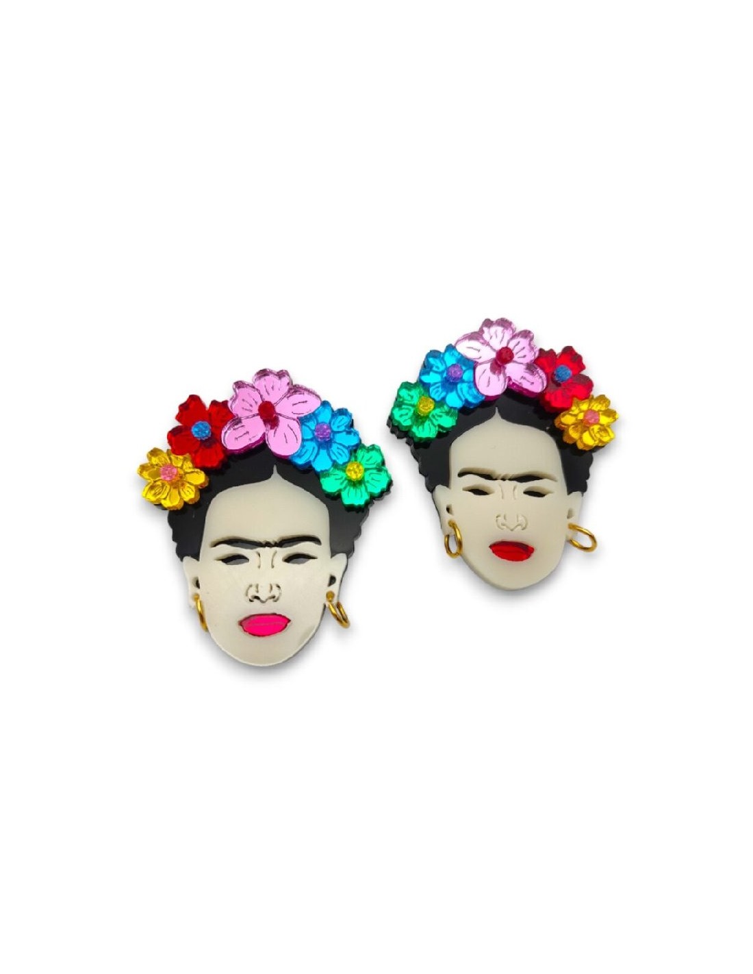 «Soy mi propia musa. El objeto que mejor conozco». La personalidad artística más controvertida y actual, que sigue inspirando el arte y la moda. Una interpretación realista y moderna del rostro único y característico de Frida, con flores de colores en la cabeza, la forma especial de sus cejas, un labial rojo brillante efecto espejo y unos preciosos aros dorados.