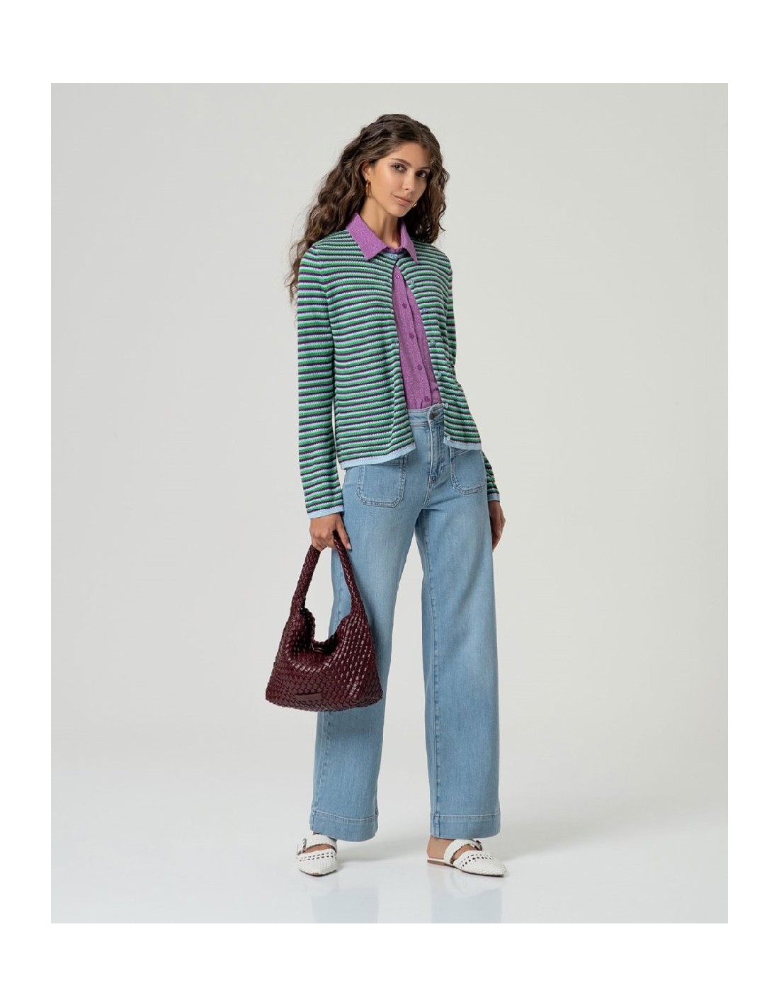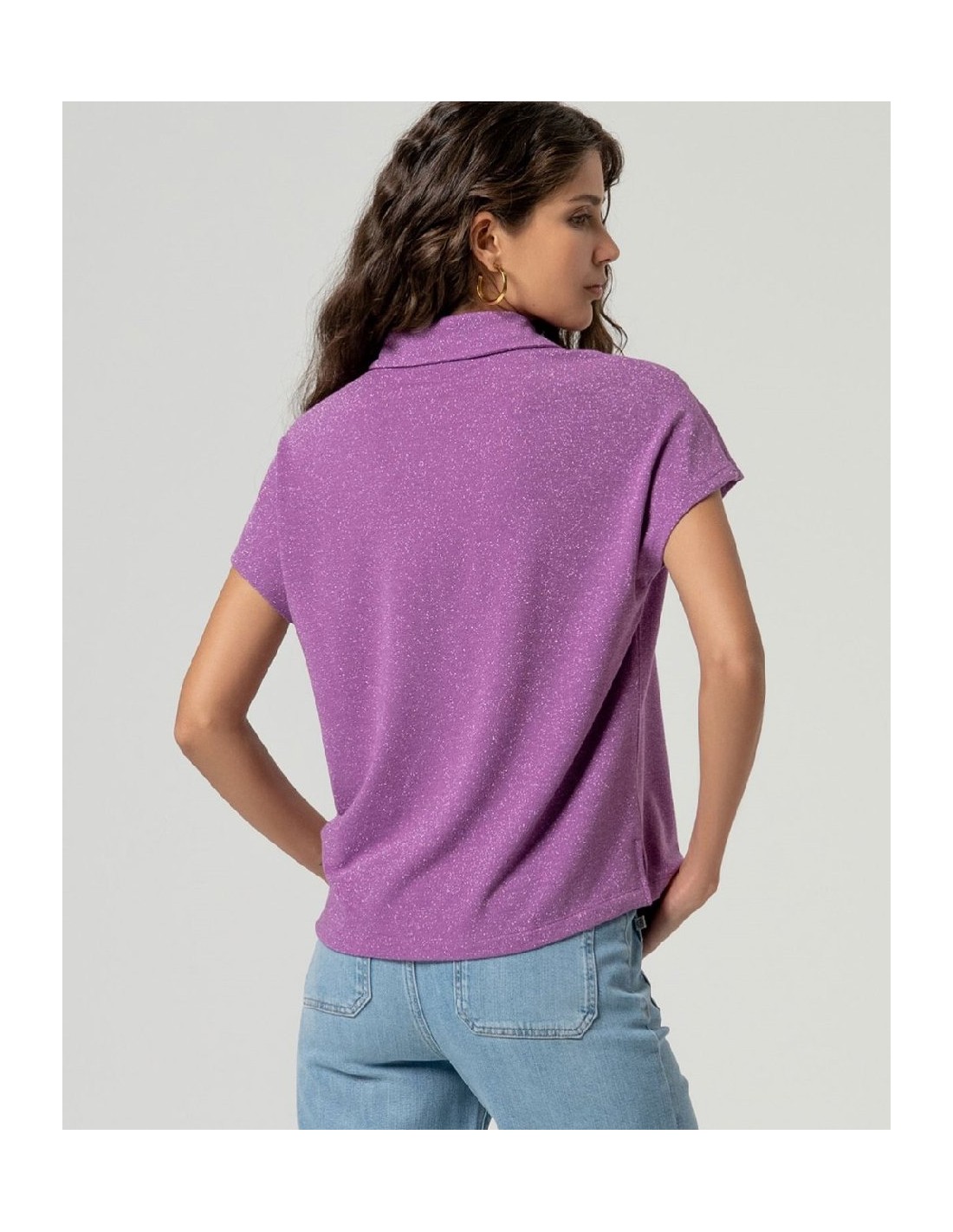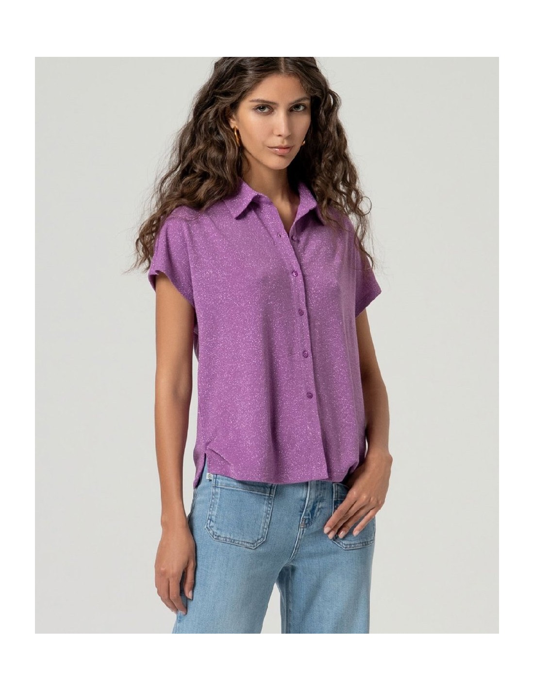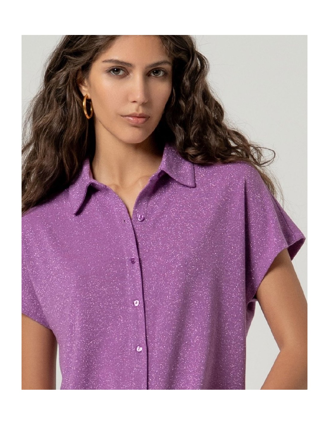 CAMISA MANGA CORTA DE LÚREX MALVA EMPOLVADO.