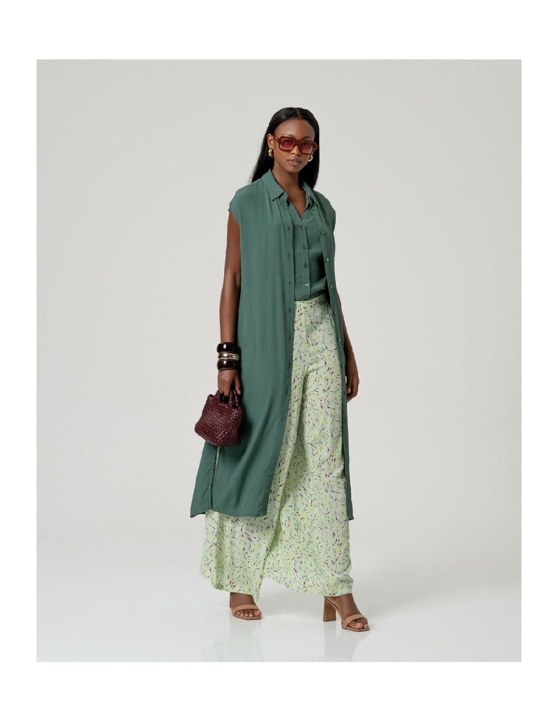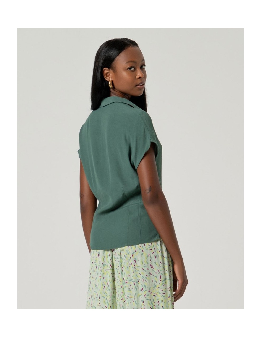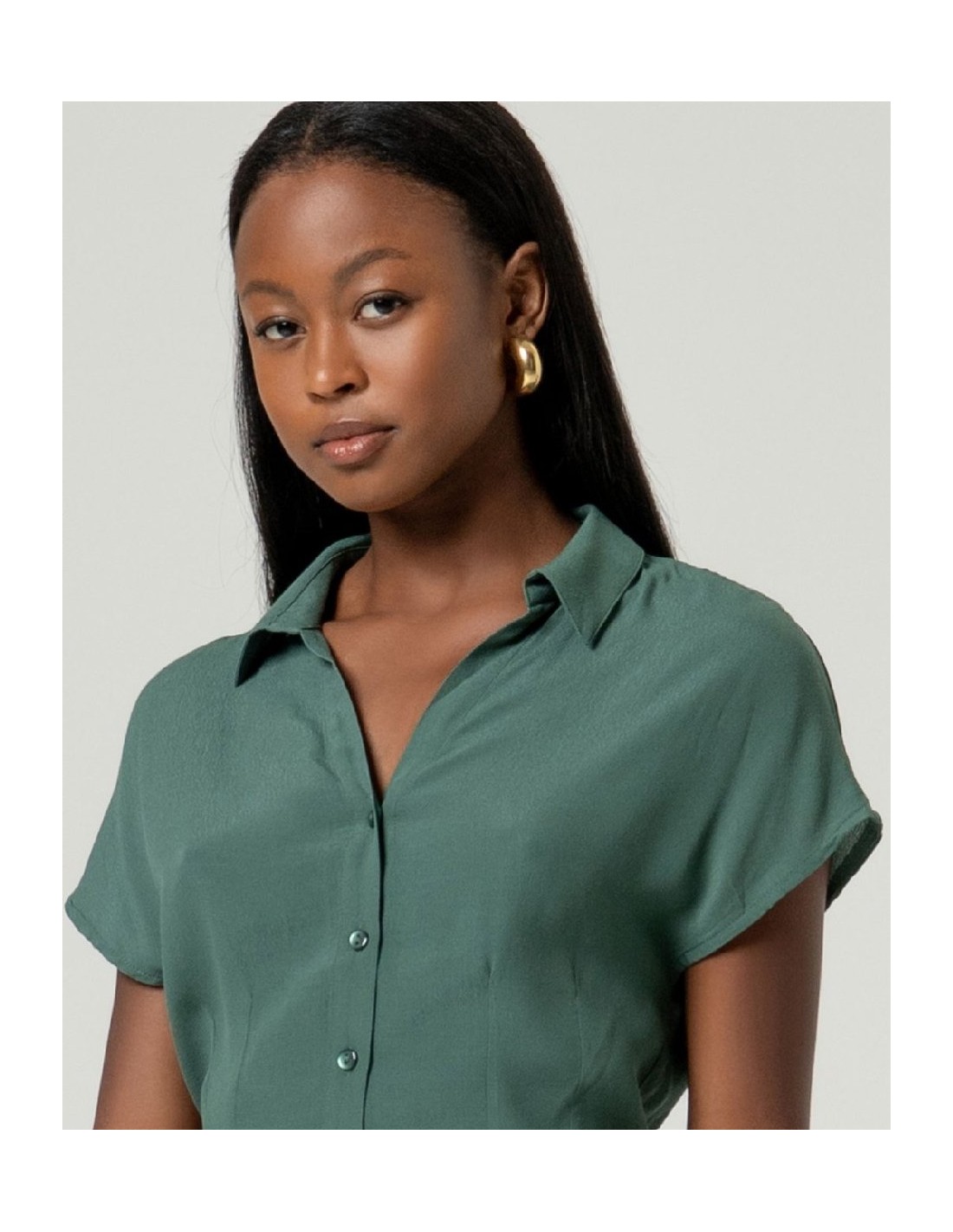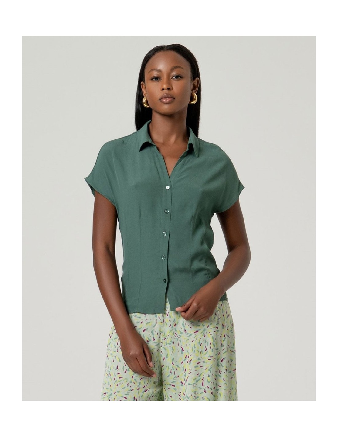 Camisa sin mangas con cuello camisero y cierre frontal de botones. Diseño entallado con bajo ligeramente redondeado y estructura limpia. Confeccionada en 100% viscosa EcoVero. Camisa camisera EcoVero entallada