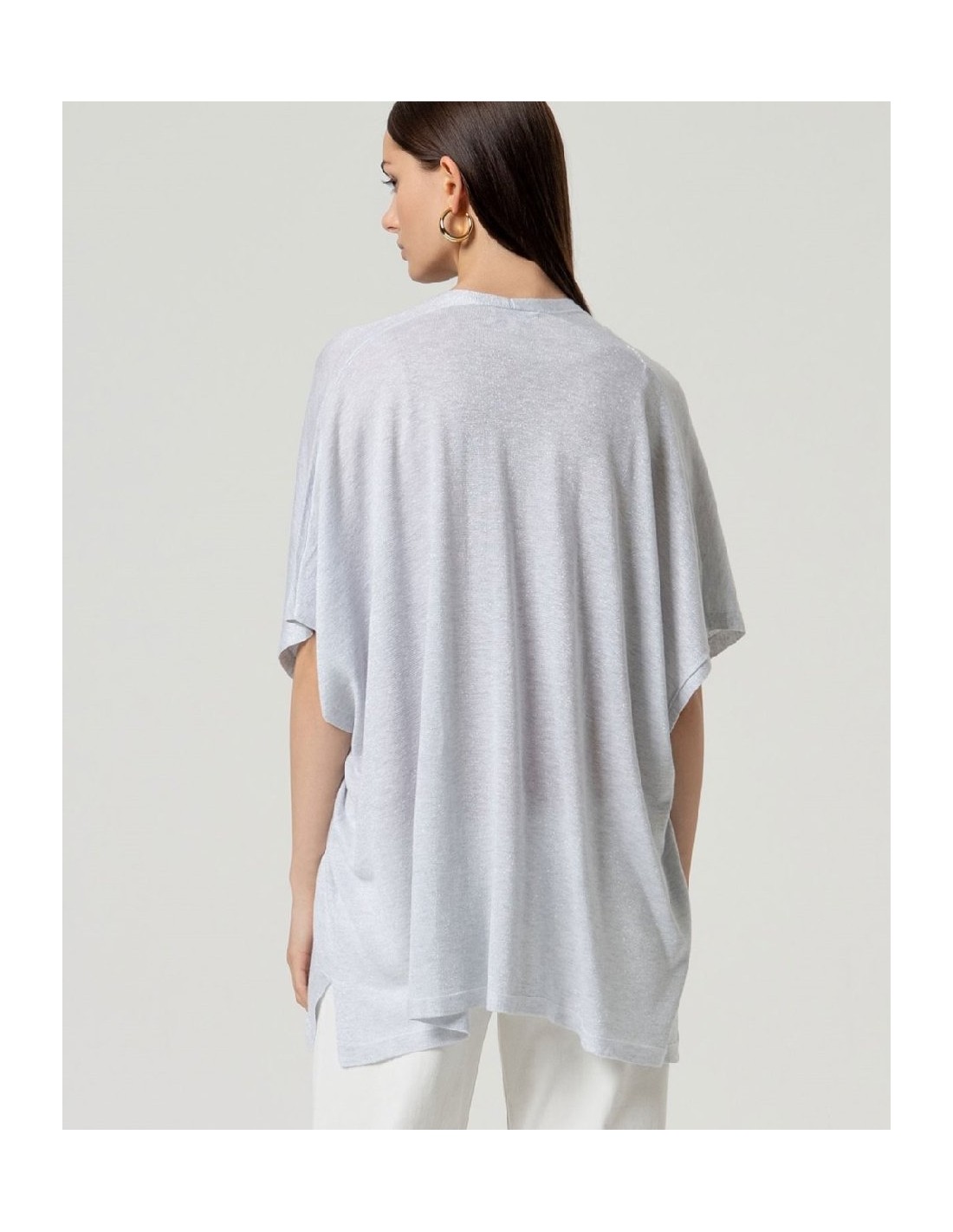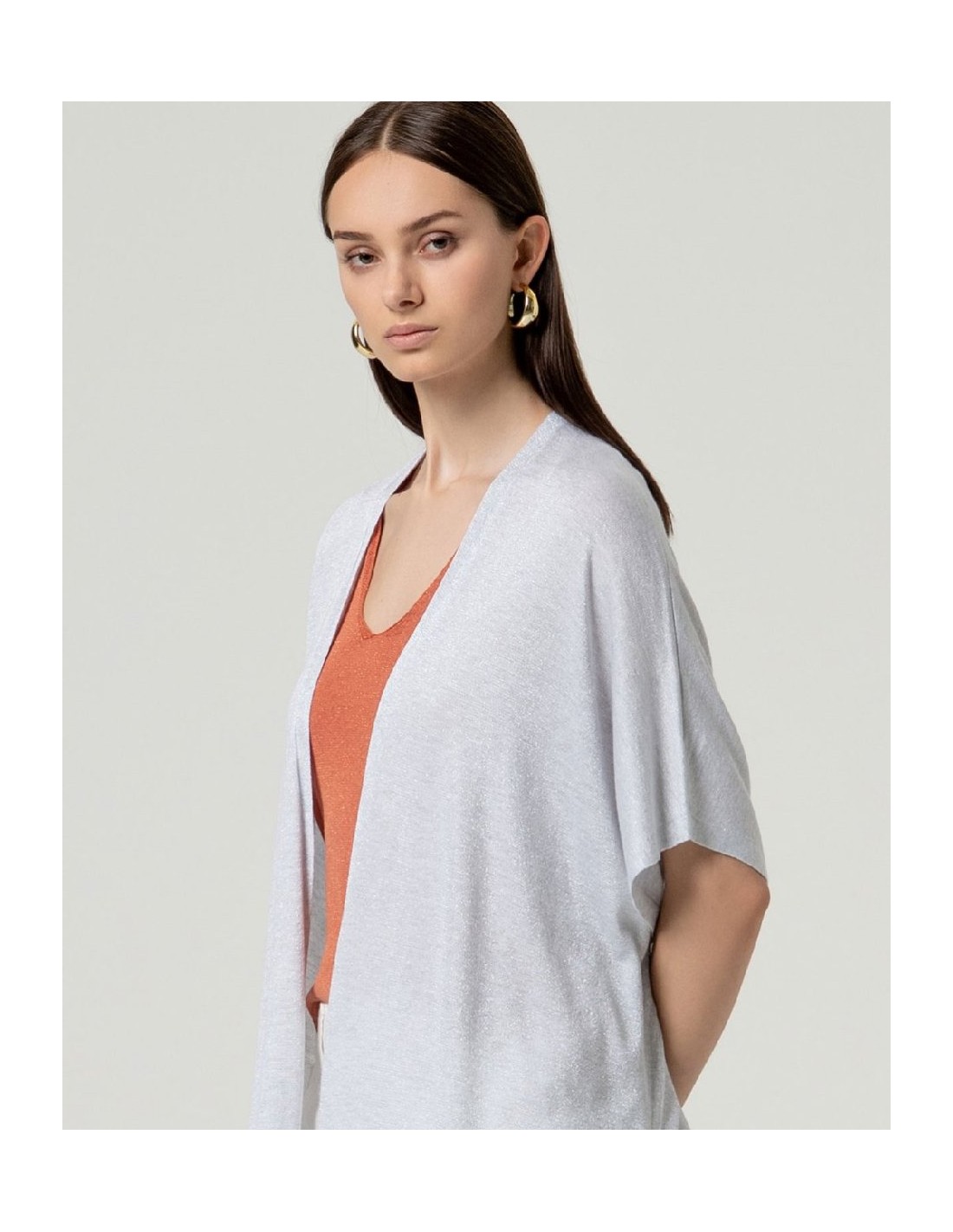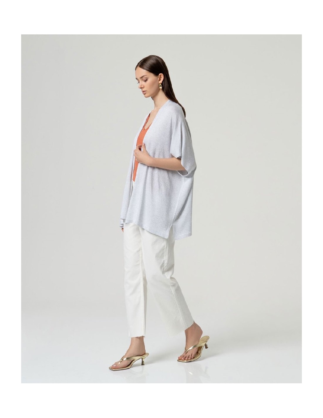 Poncho abierto de escote en pico y manga corta amplia. Diseño sin cierre de silueta recta y caída suelta. Confeccionado en tejido de punto fino con acabado brillante. Poncho de punto brillante.