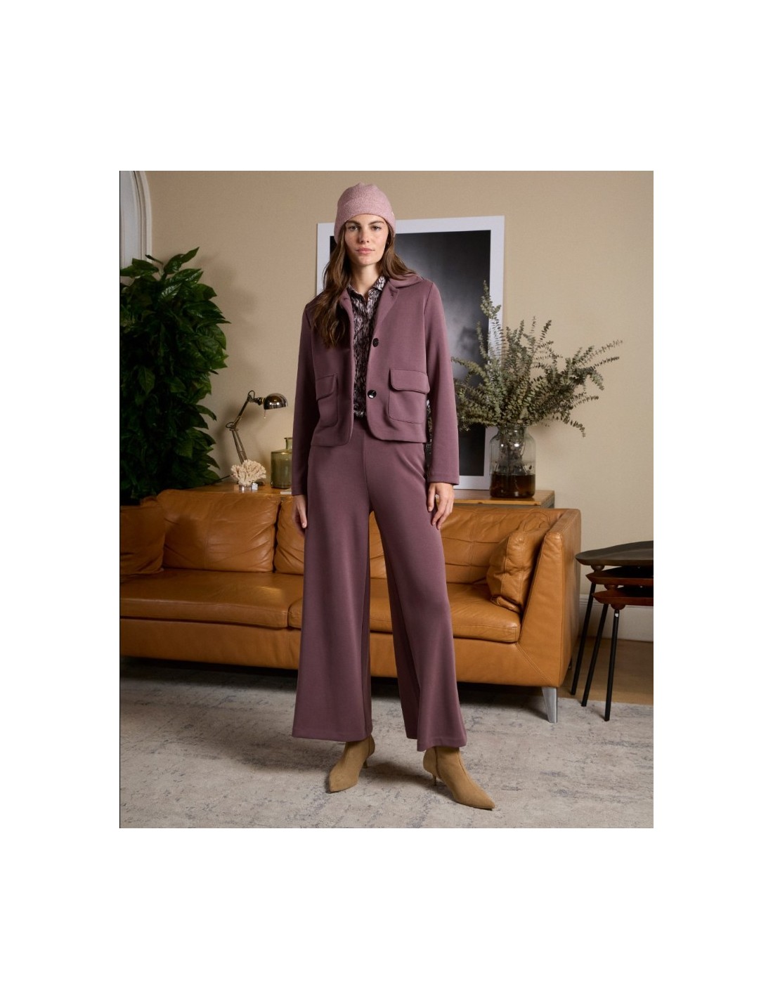 Chaqueta corta confeccionada en modal grueso, un tejido extraelástico y suave. Con cuello clásico y bolsillos delanteros, combina estructura y comodidad en una prenda versátil que se adapta con estilo a tu día a día.