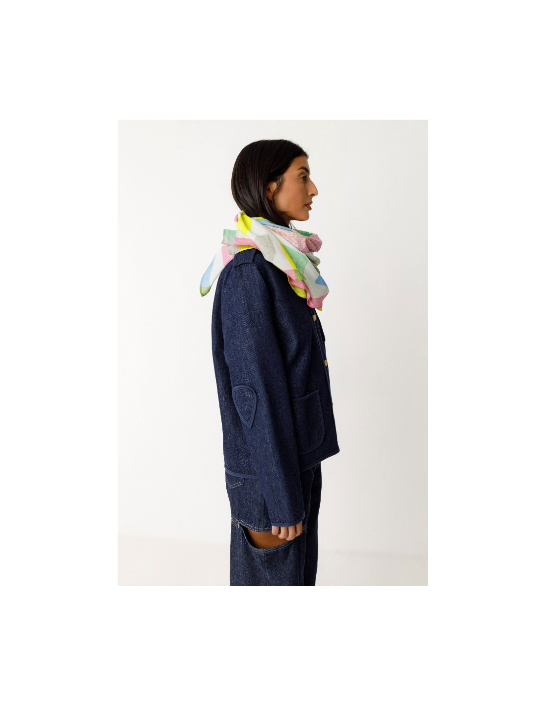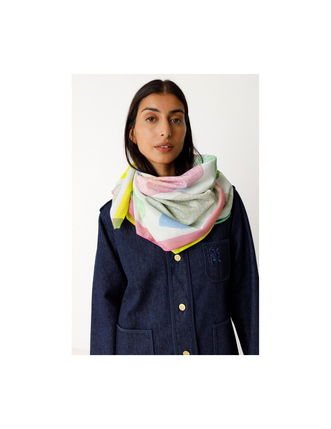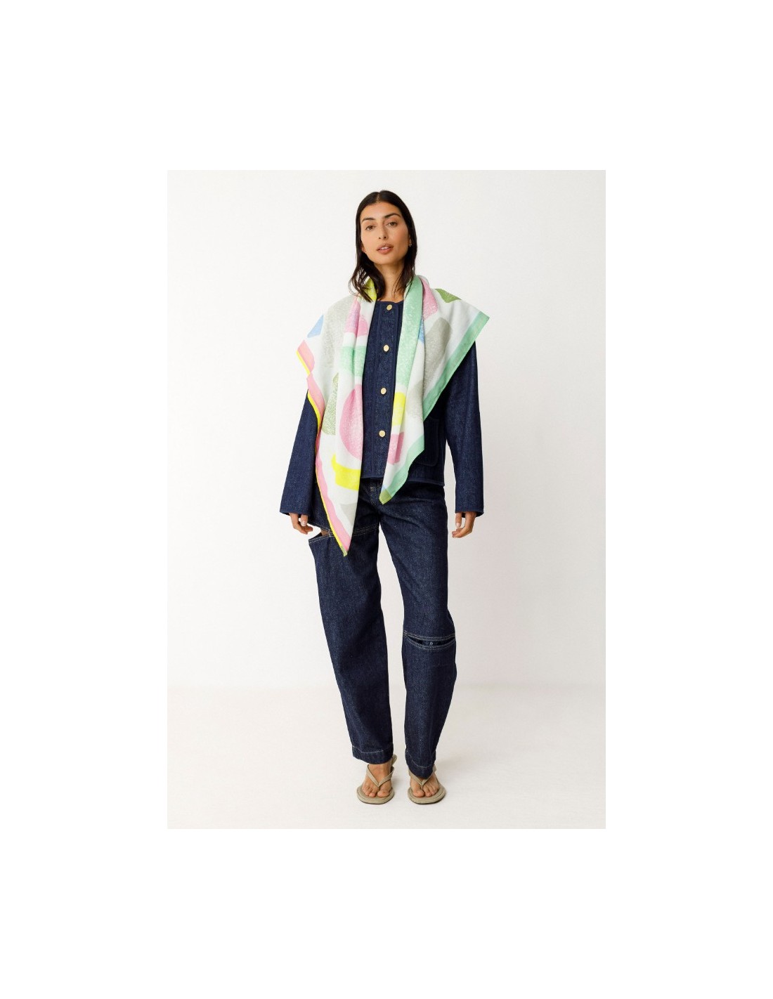 Pañuelo estampado de algodón orgánico con certificado GOTS. Mide 116 x 116 cm.