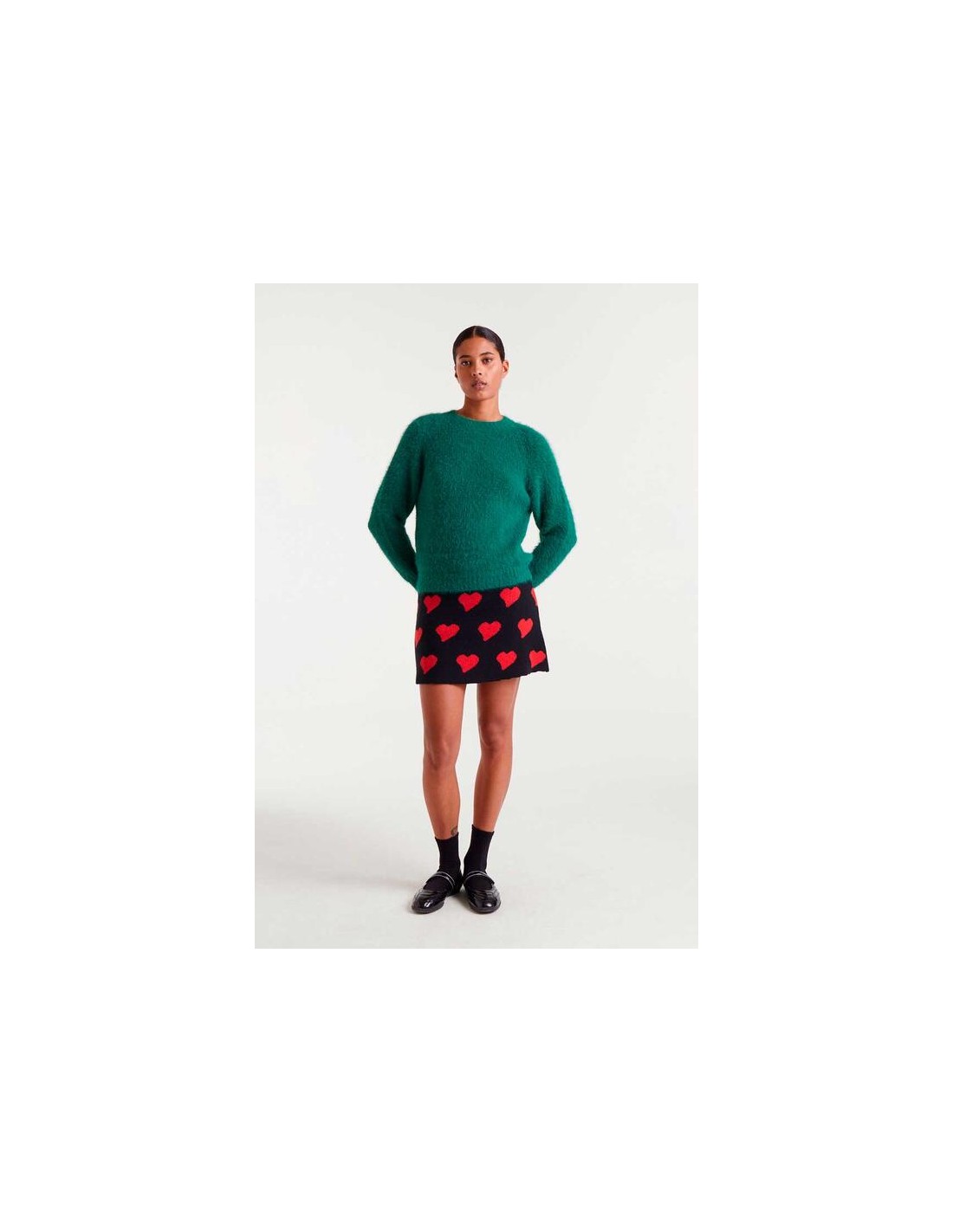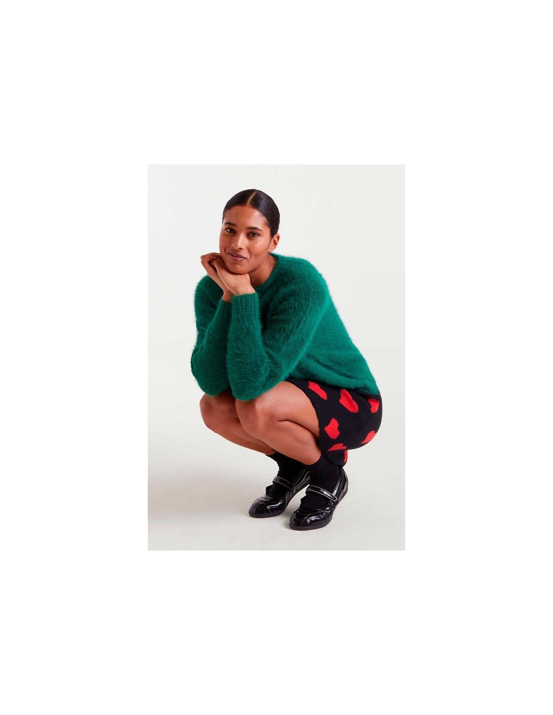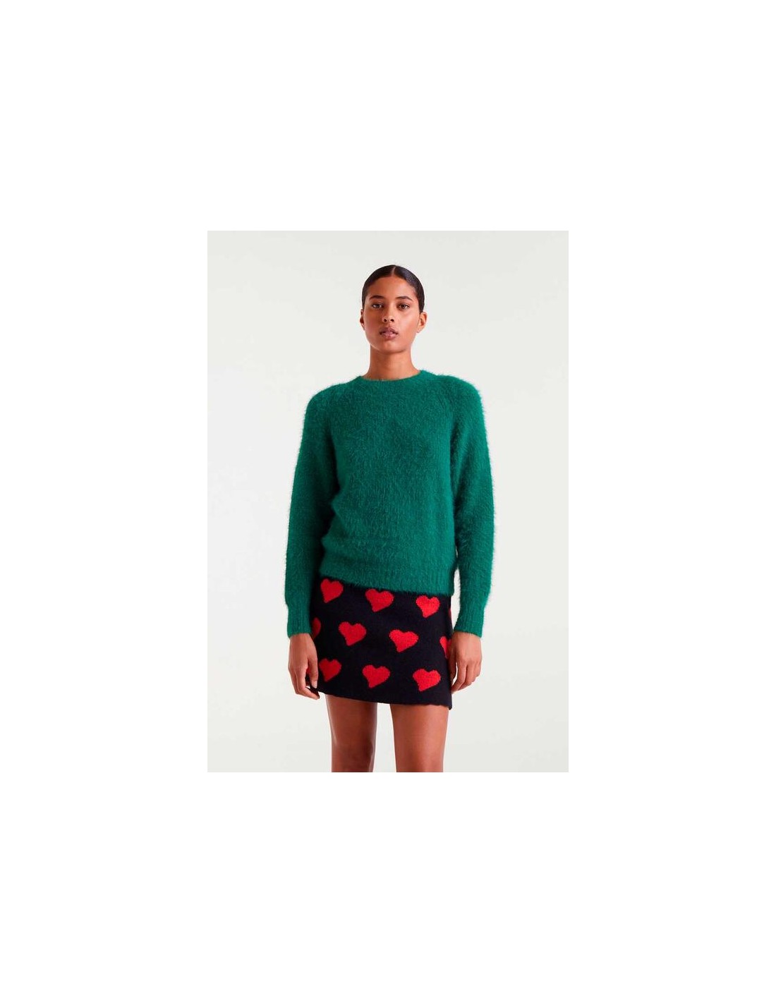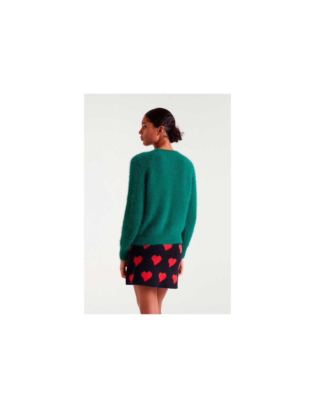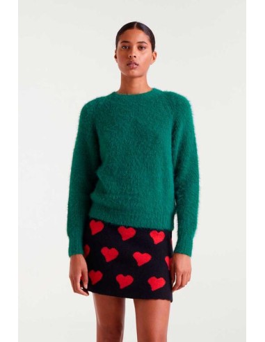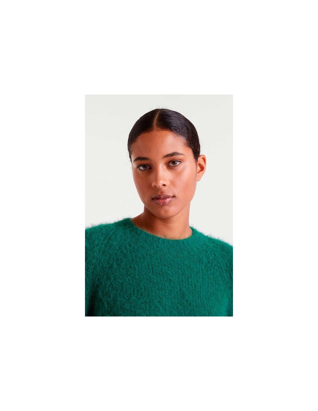 Jersey punto con textura de color verde. Cuello redondo y manga larga. Detalles en rib.