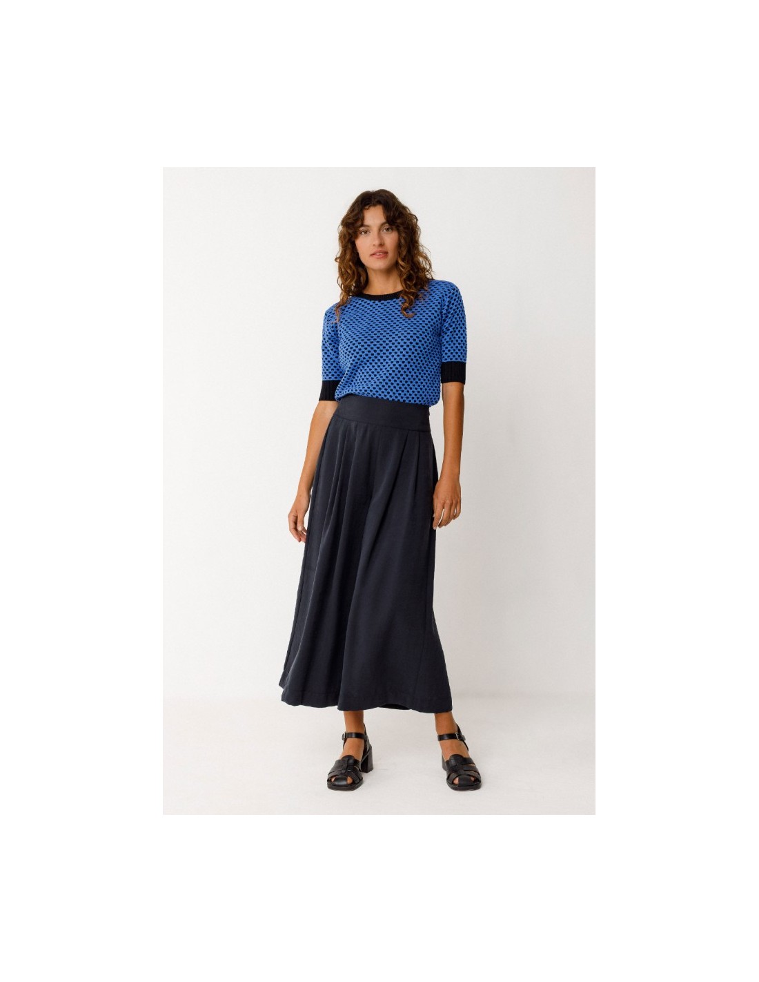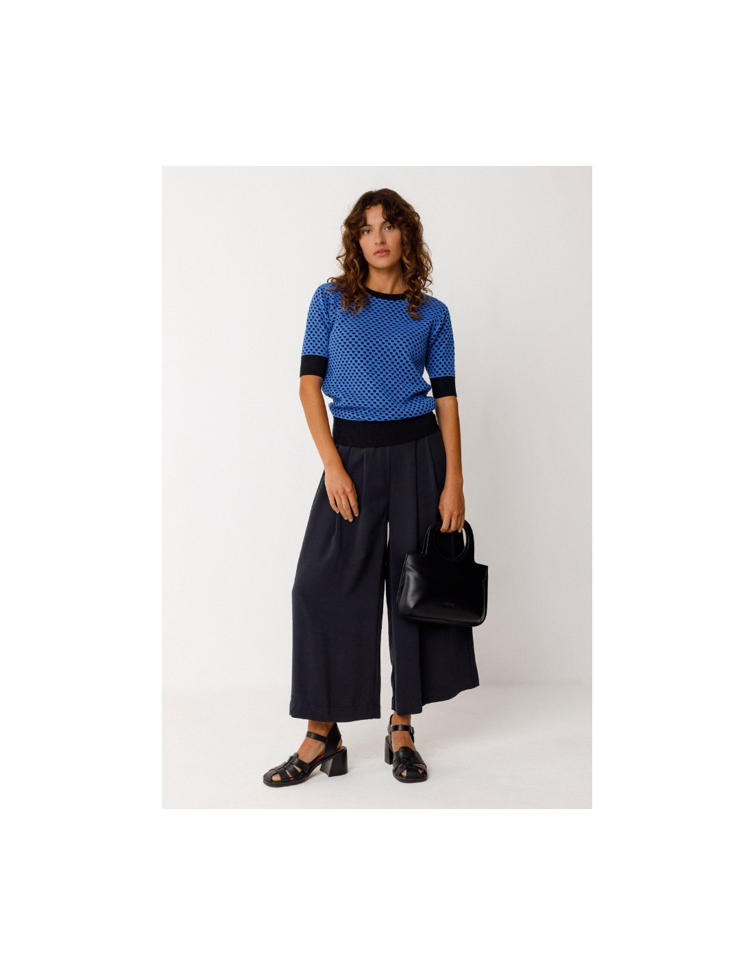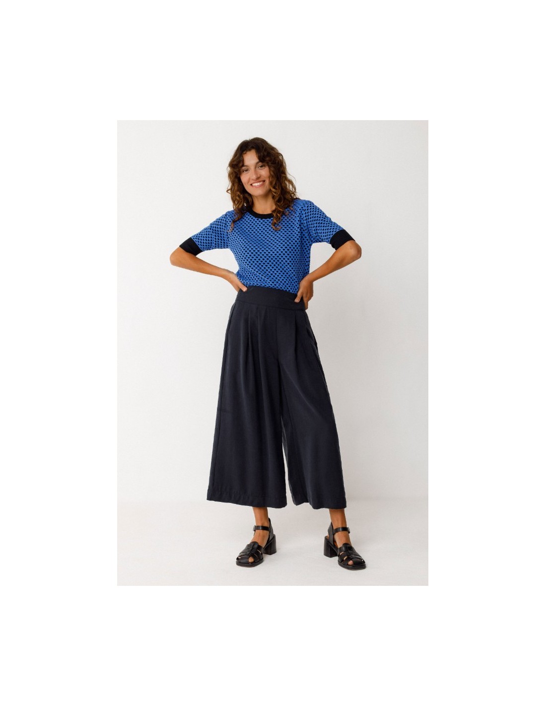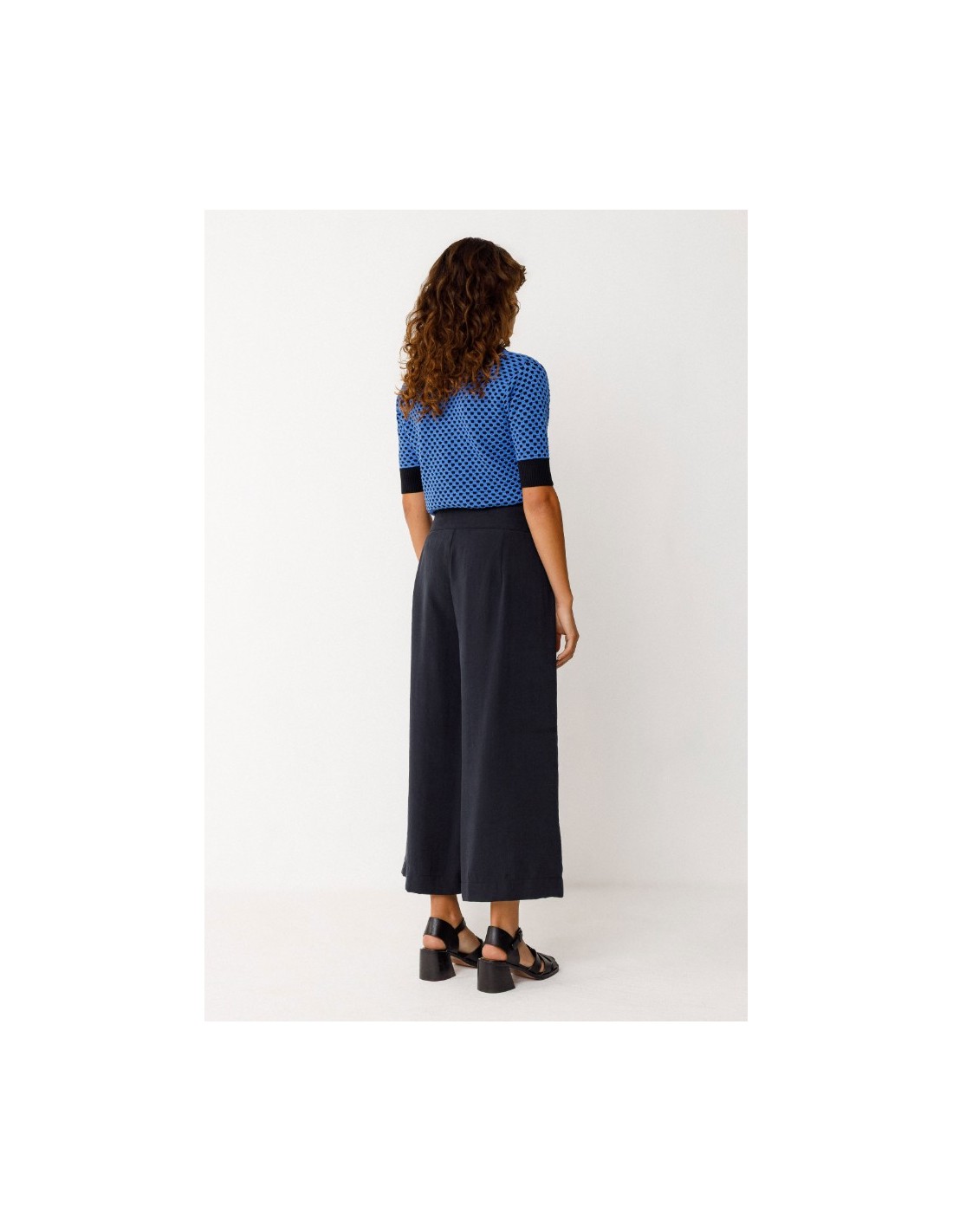 Pantalón de corte midi de pata ancha con pliegues en la parte delantera.