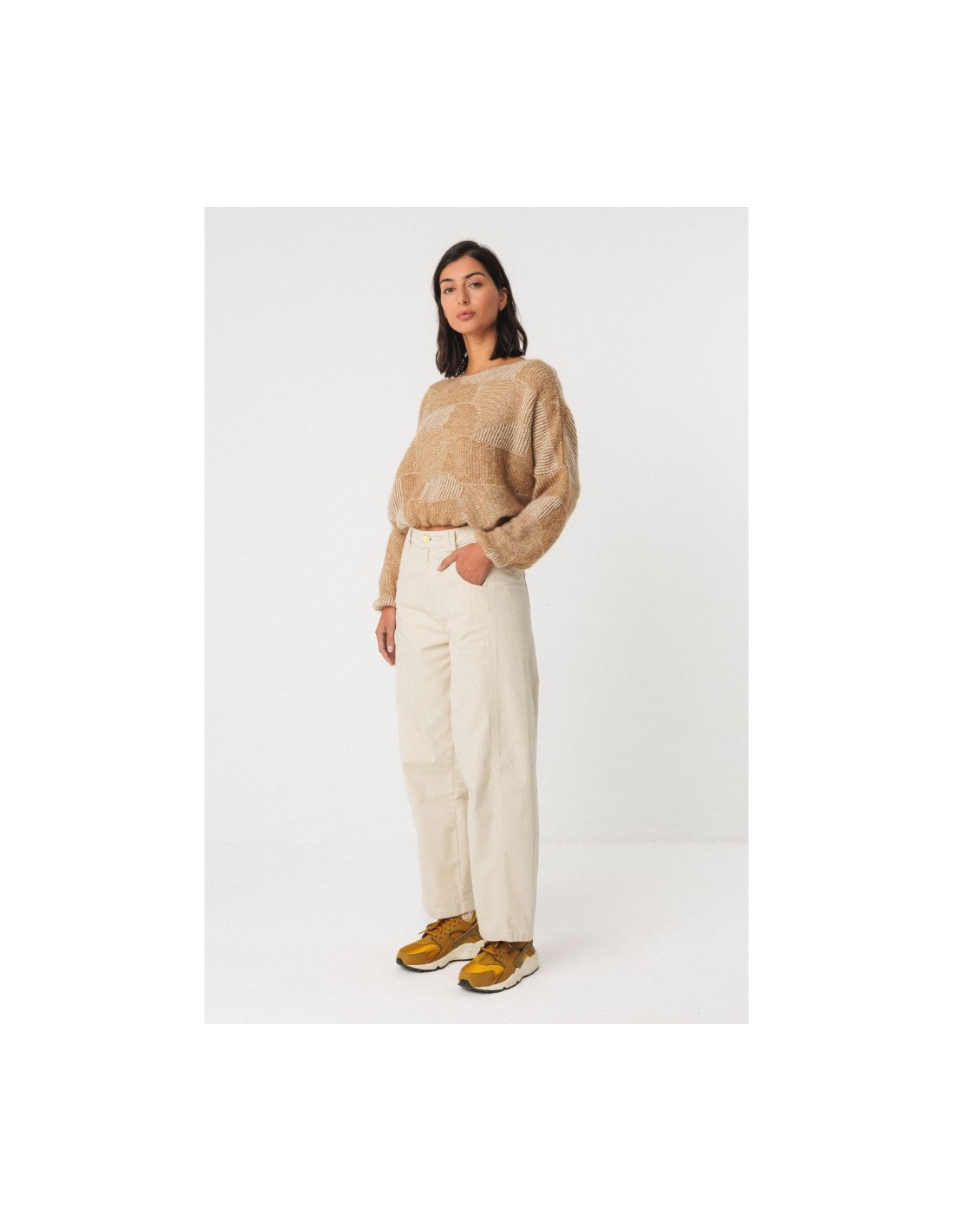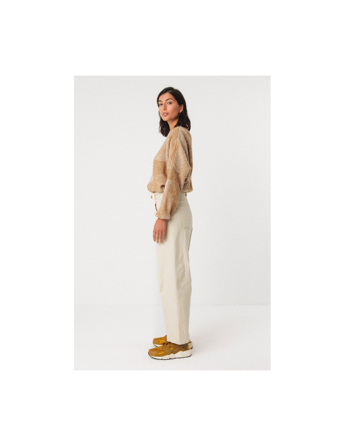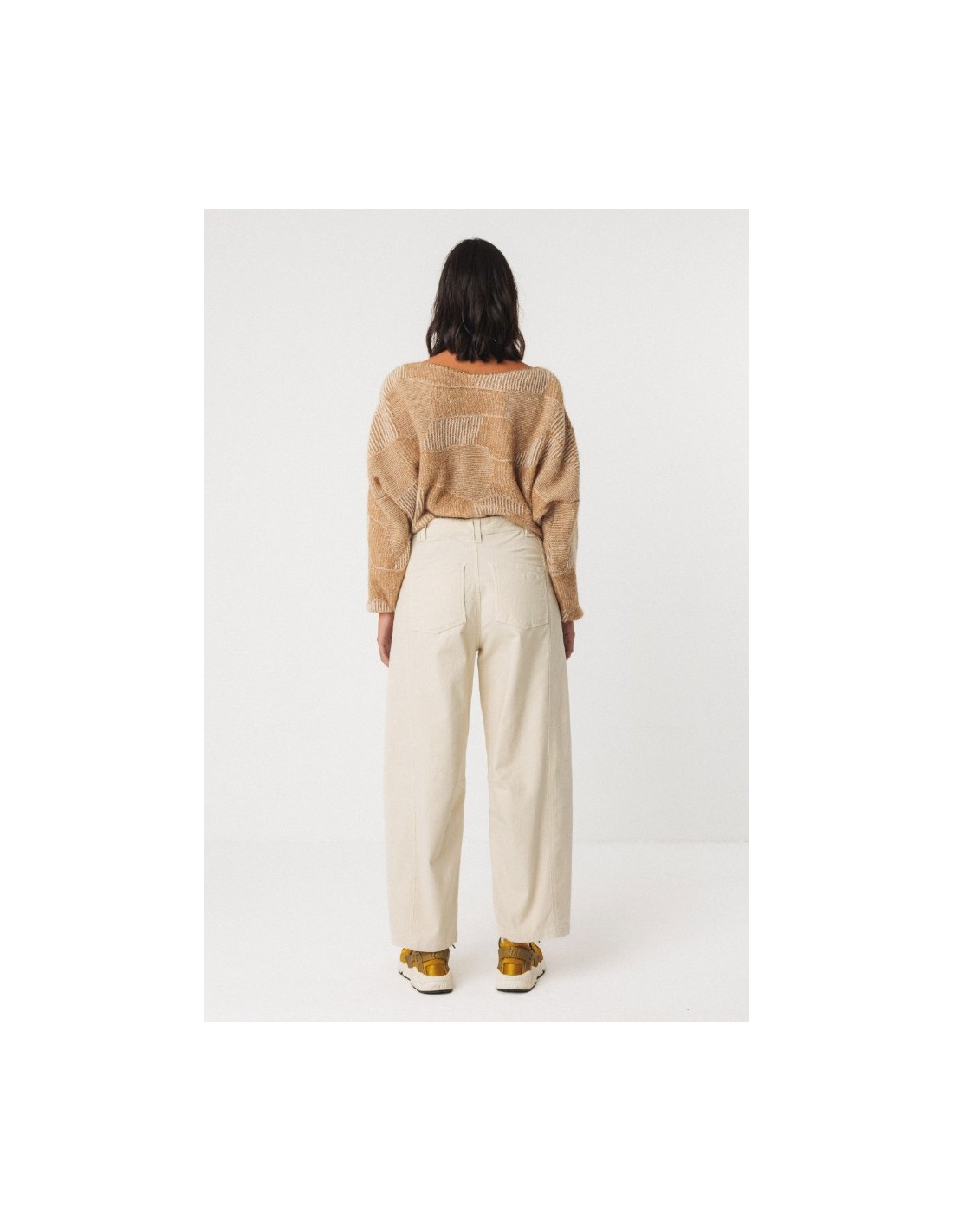 Pantalón amplio de terciopelo fino de algodón orgánico con certificado GOTS. De corte hasta el tobillo, se cierra con una bragueta con cremallera delantera.
