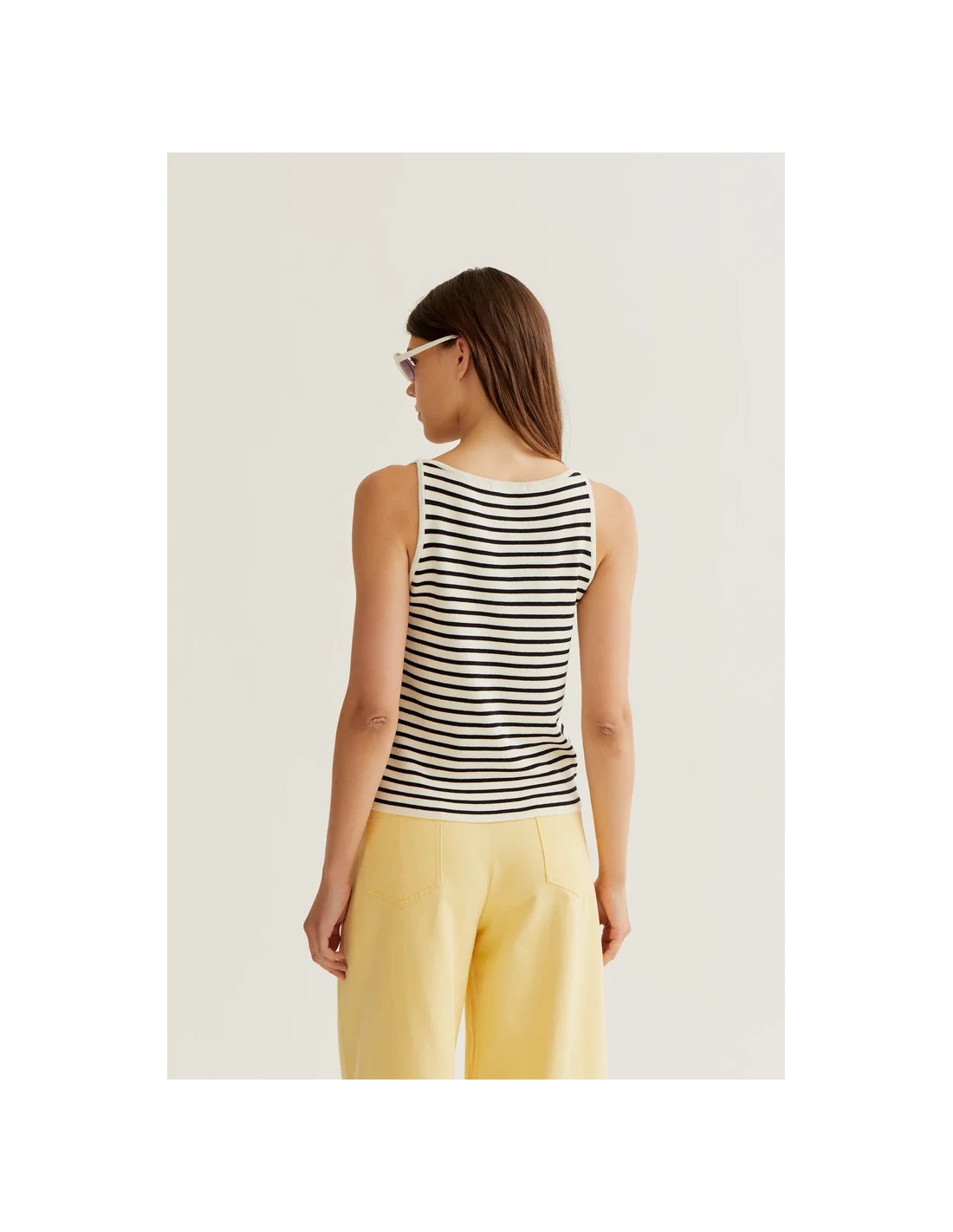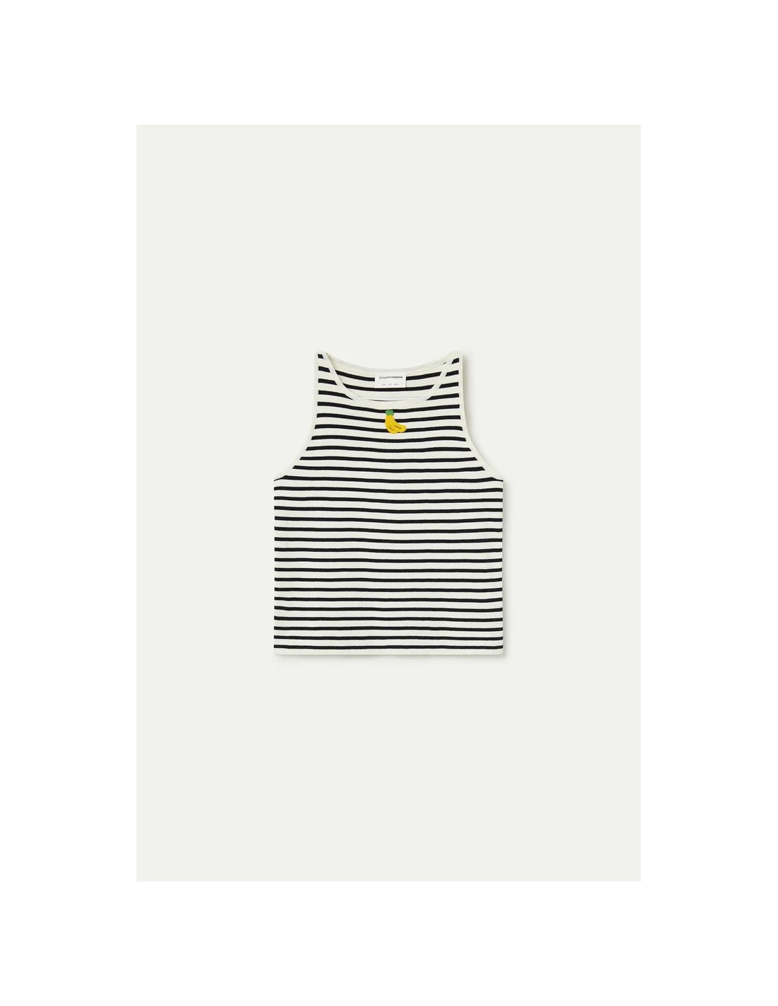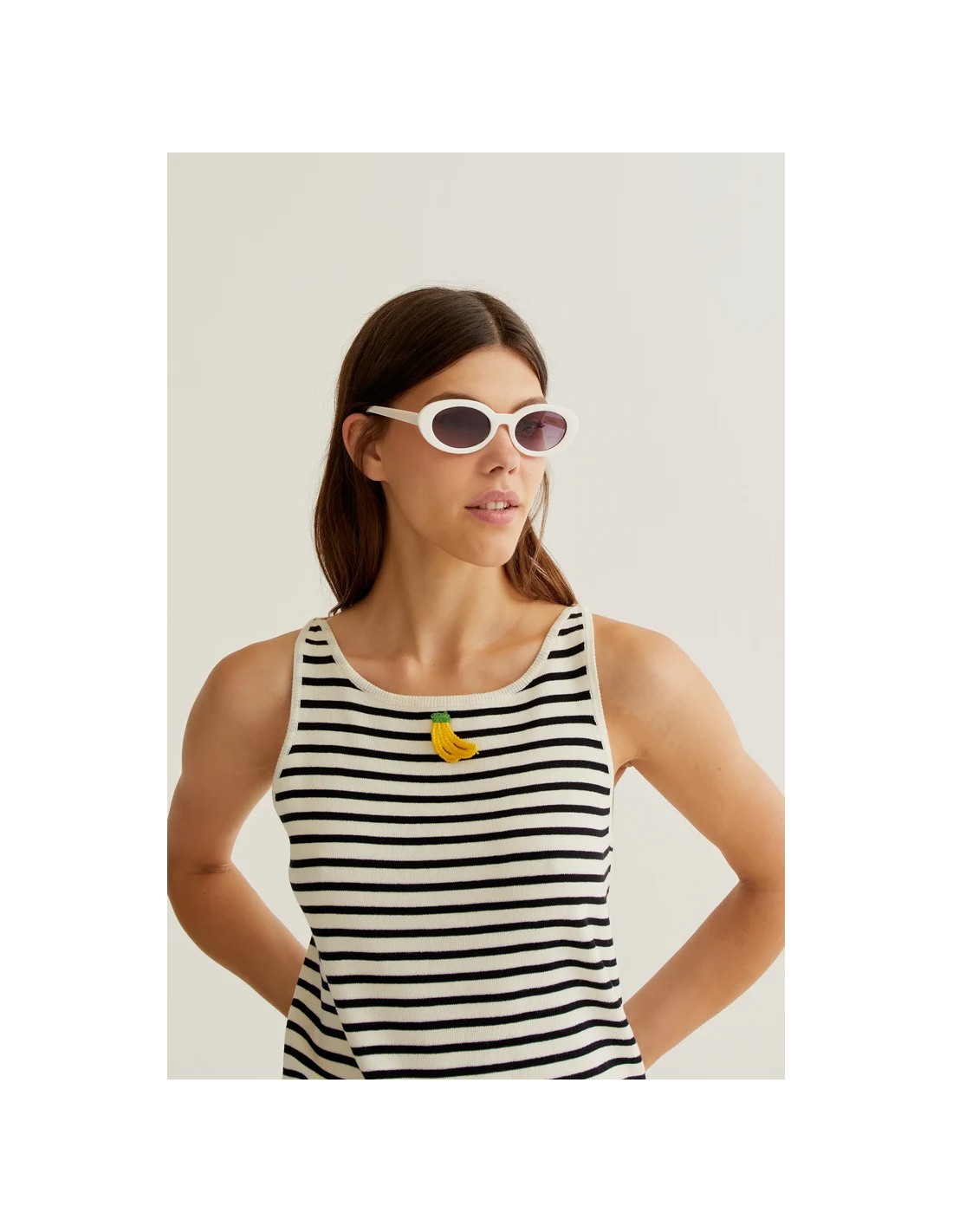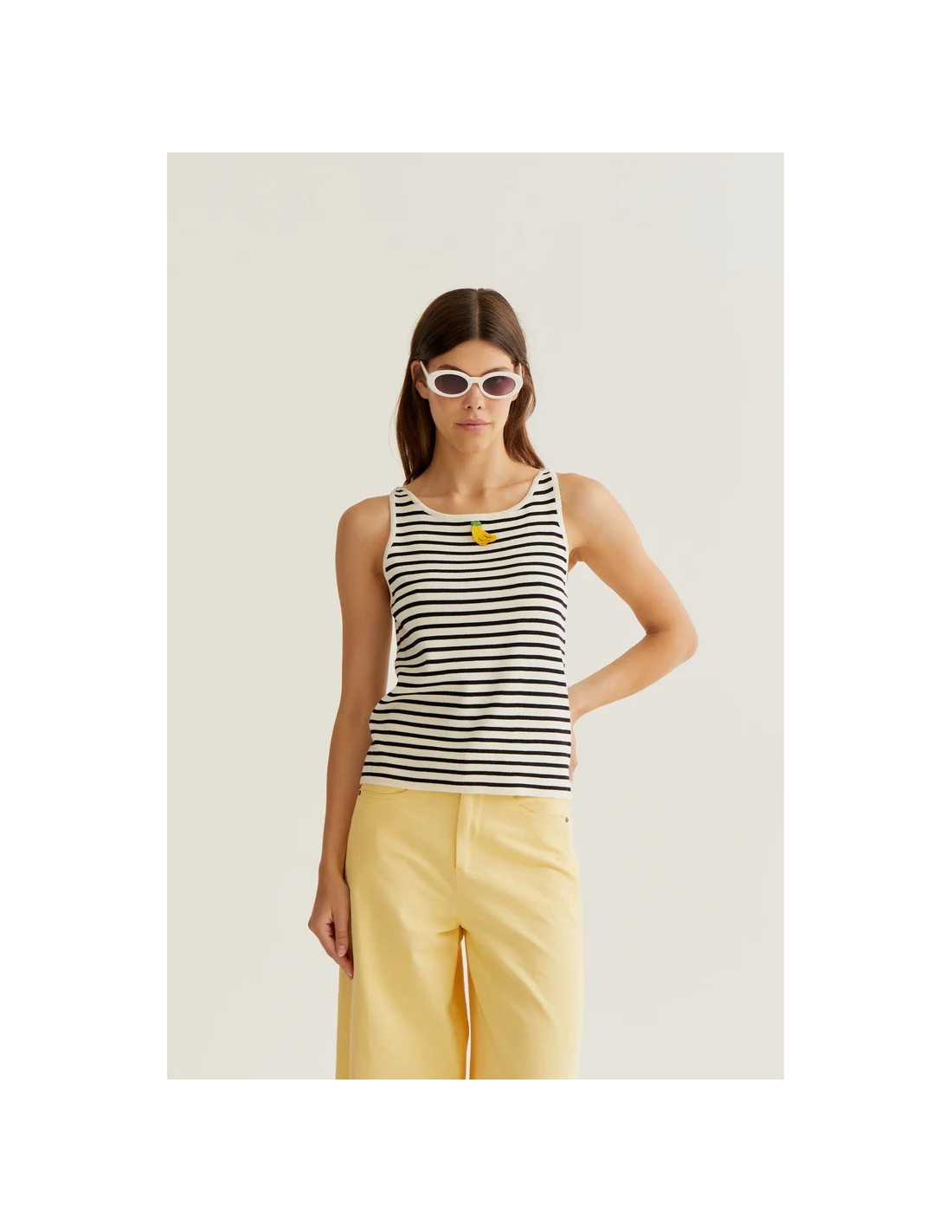 TOP DE RAYAS BLANCO Y NEGRO CON BORDADO DE BANANA