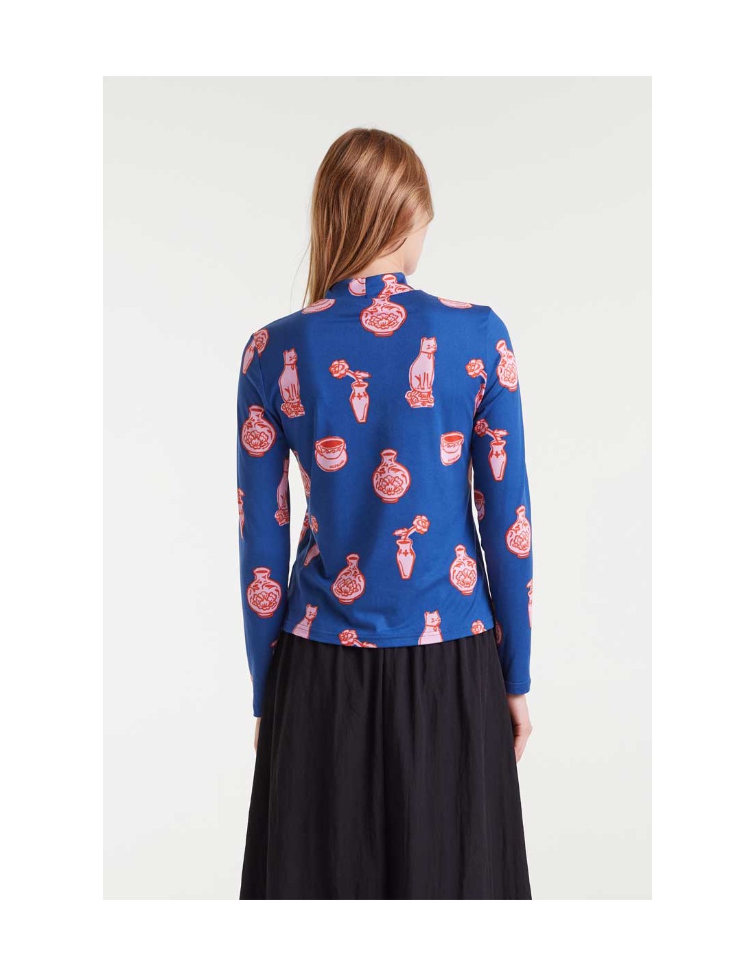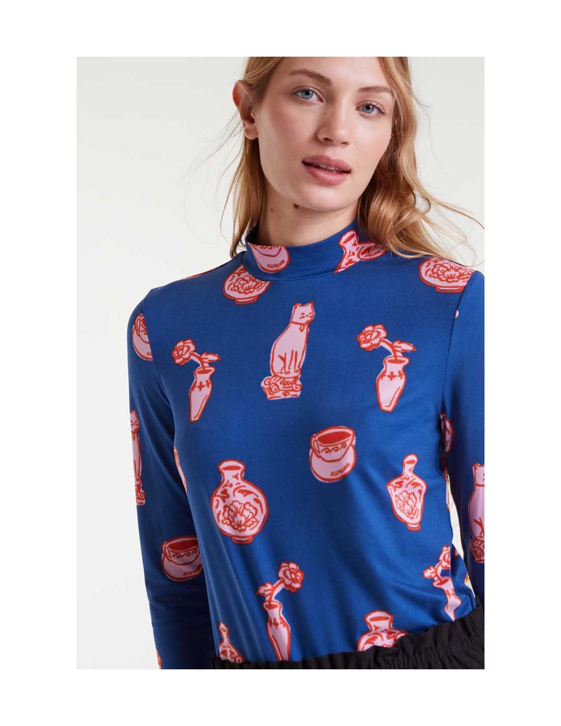 Camiseta con estampado Porcelain. Con cuello mock y manga larga.