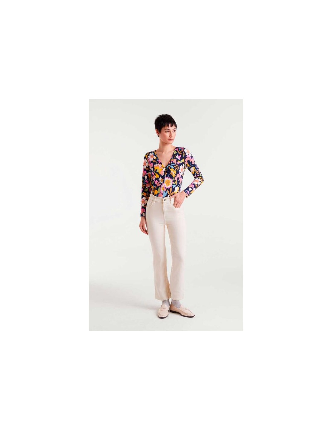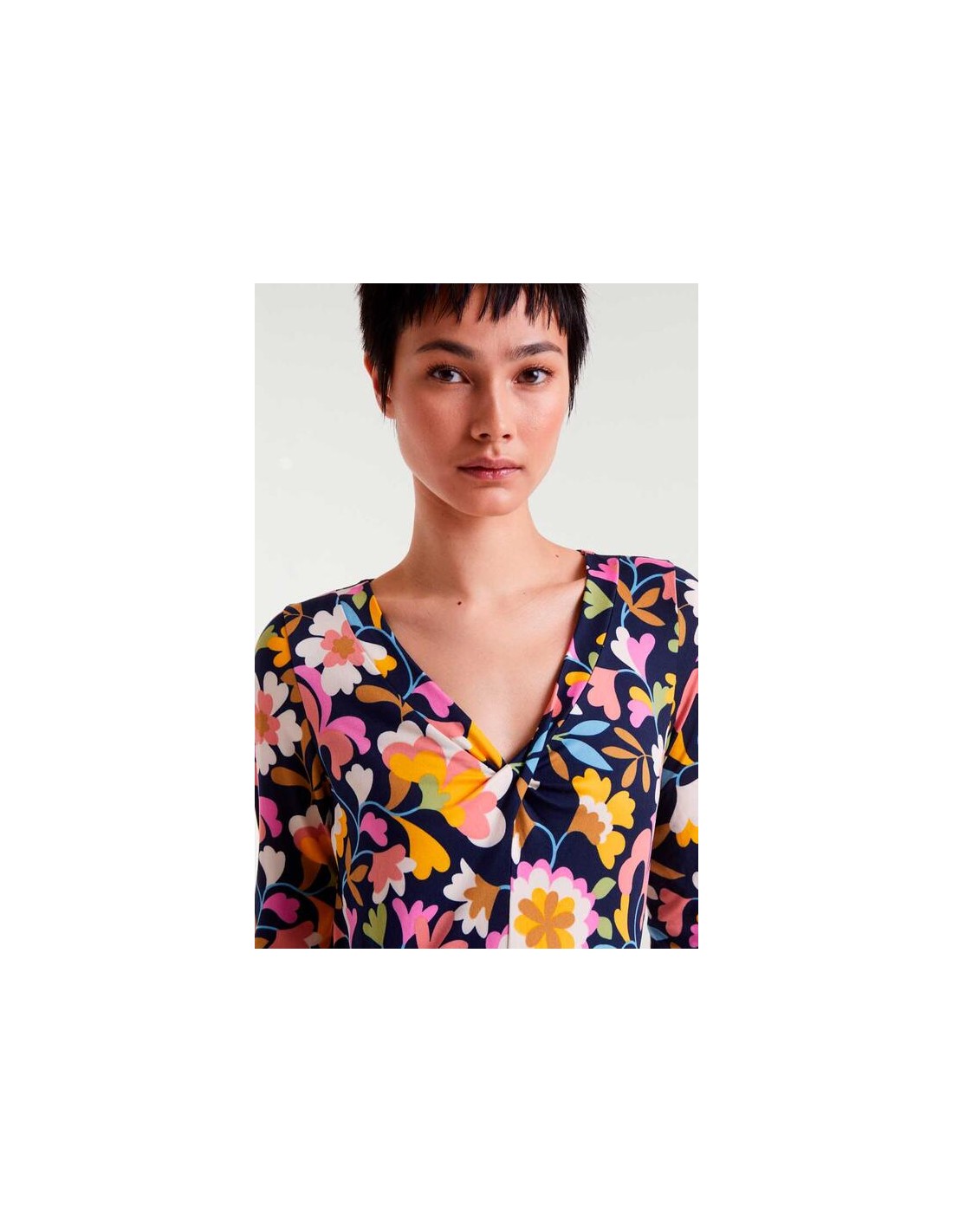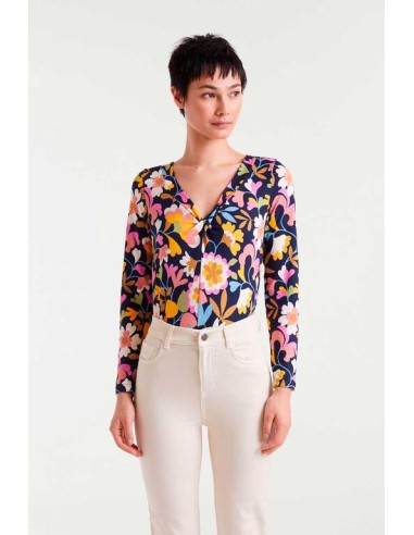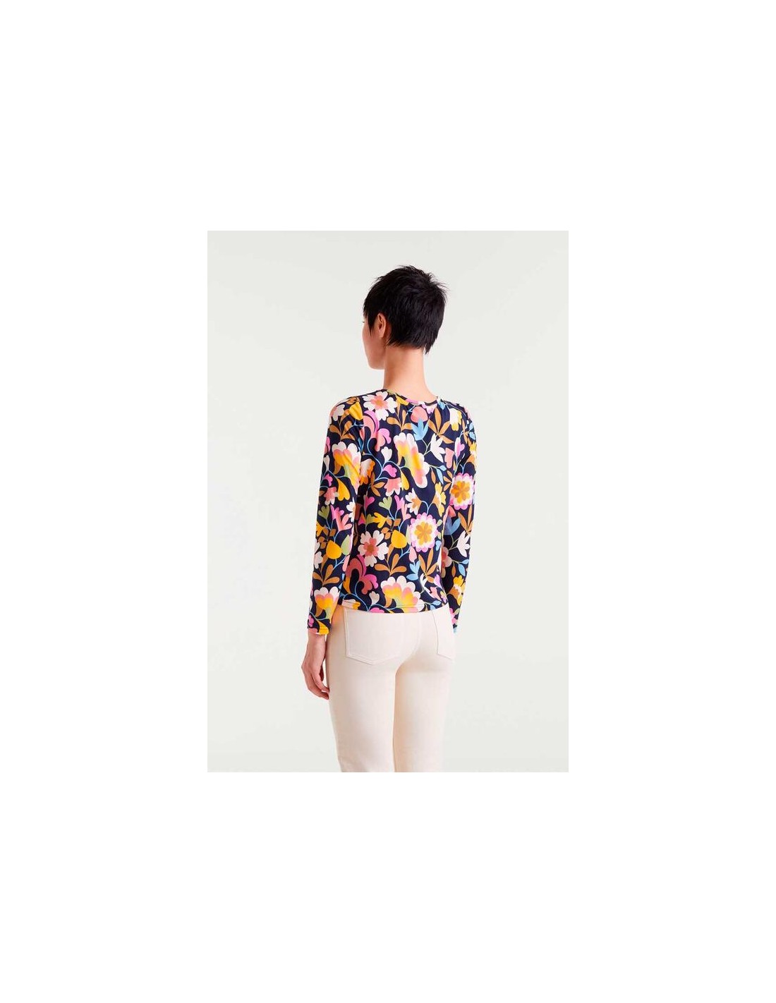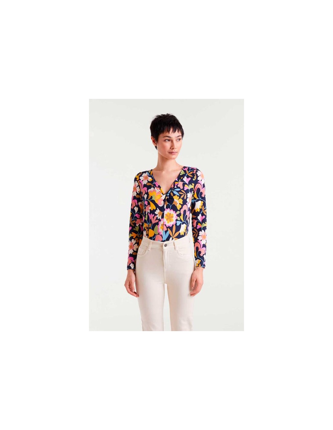 Camiseta con tejido punto estampado Baboushka. Con escote pico anudado y manga larga.