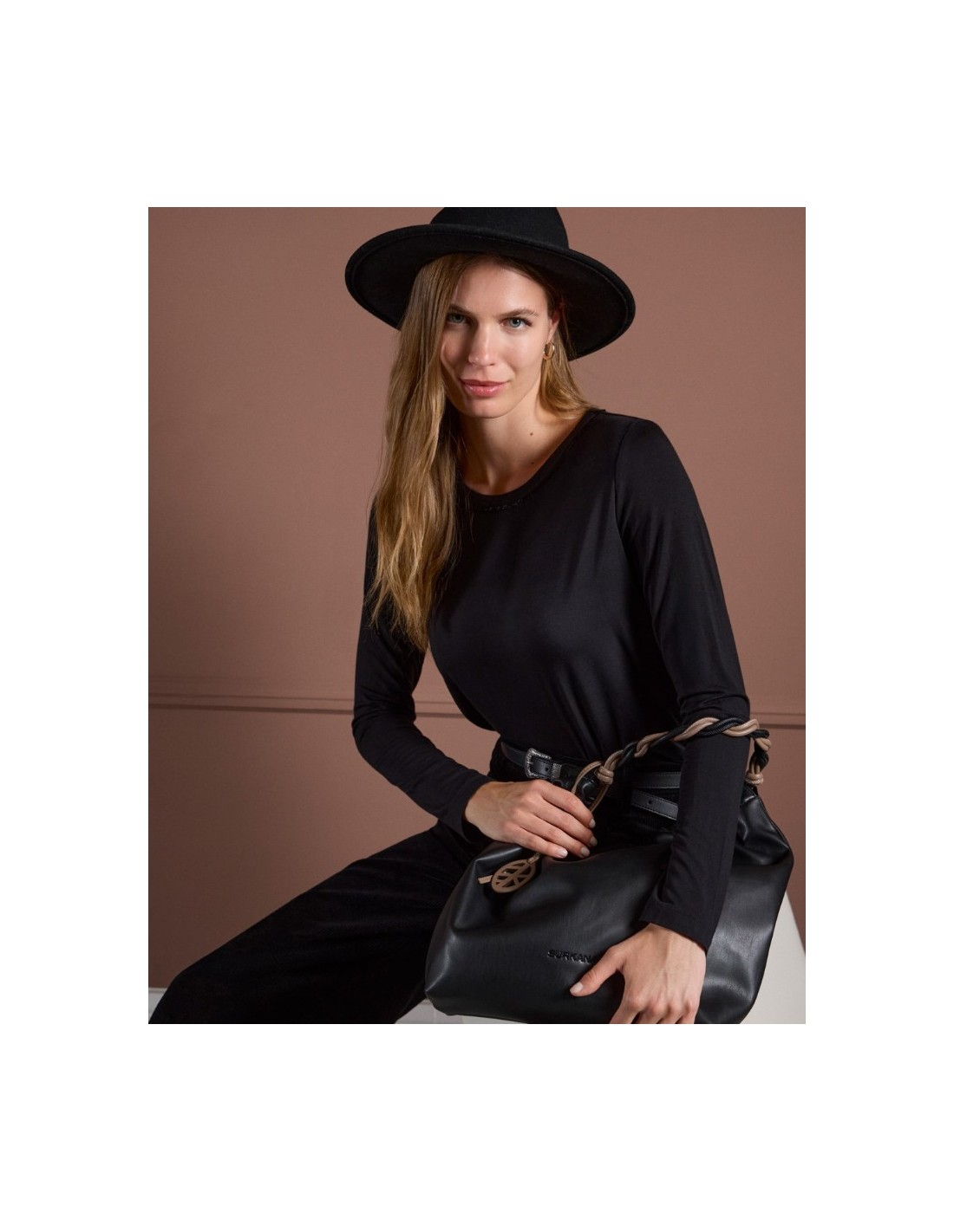 CAMISETA CUELLO REDONDO DE VISCOSA Y BAMBÚ.