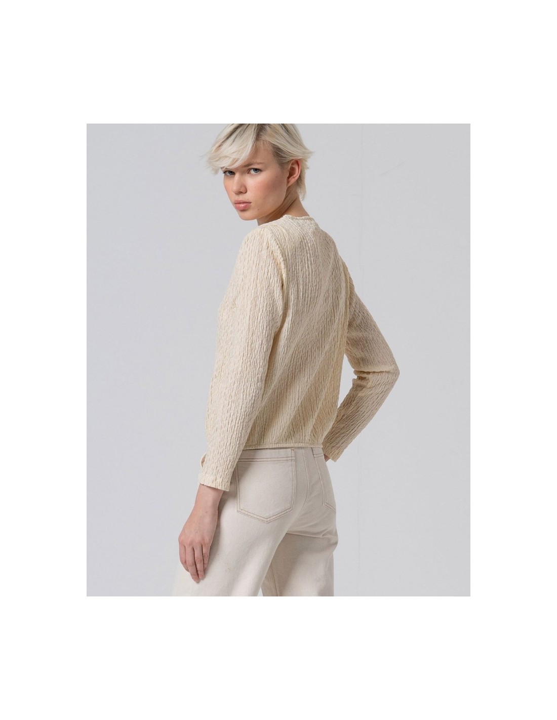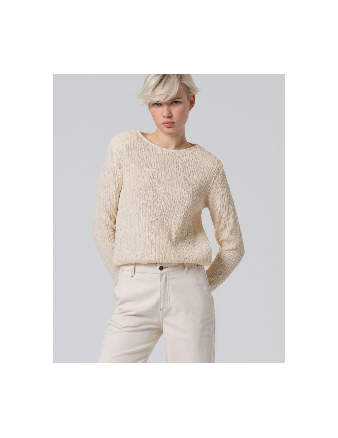Camiseta de manga larga en algodón con textura muy marcada y tacto suave. El escote barco realza el cuello y añade un aire sofisticado a esta prenda cómoda y femenina. Gracias a su tejido elástico, se adapta perfectamente al cuerpo sin ceñir.