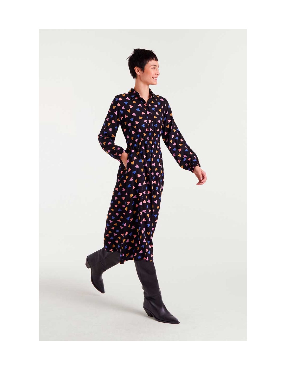 VESTIDO MIDI CON ESTAMPADO POTPURRÍ.