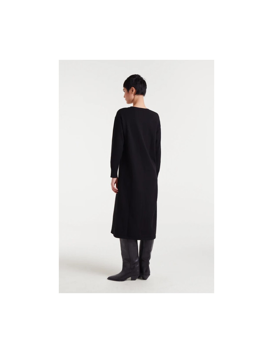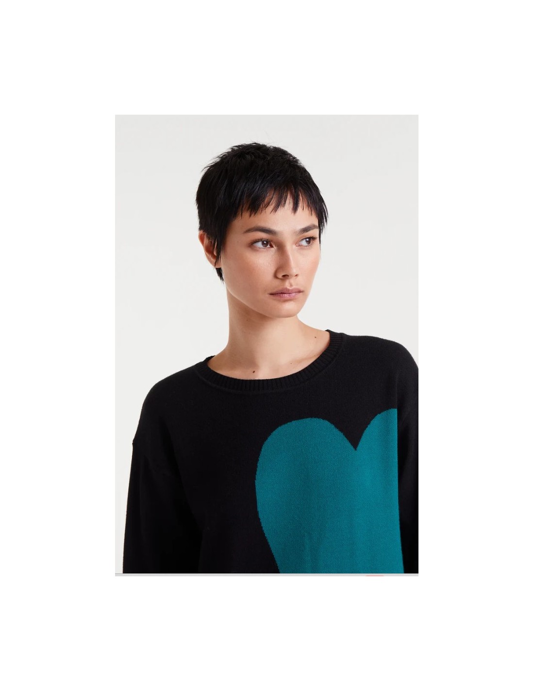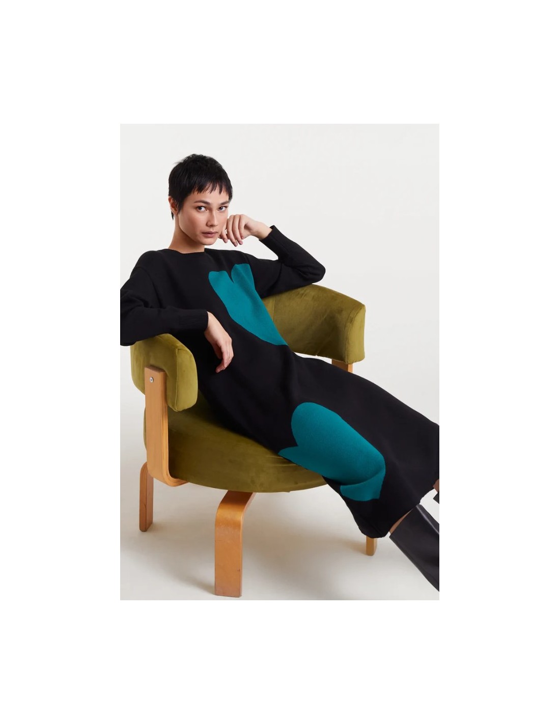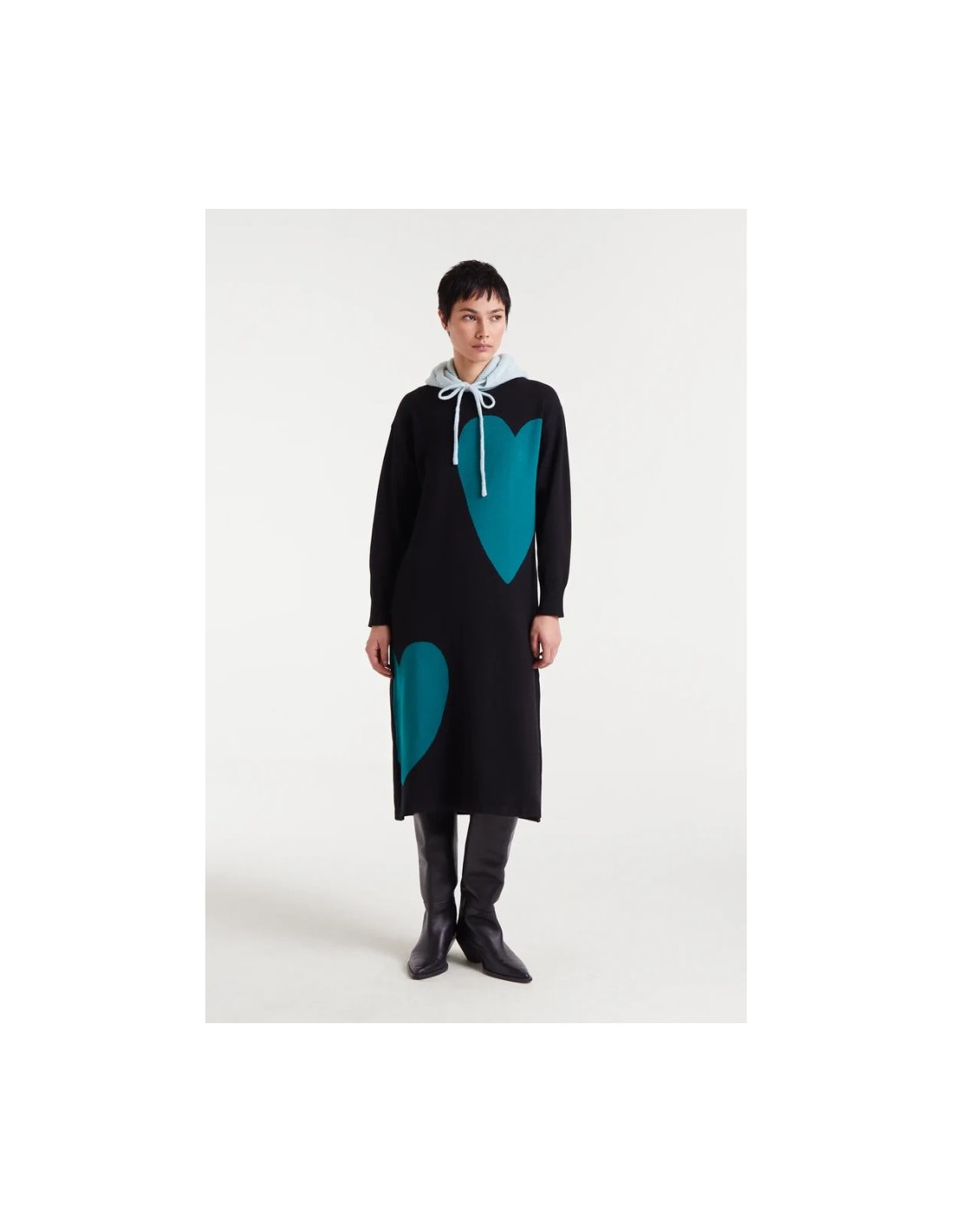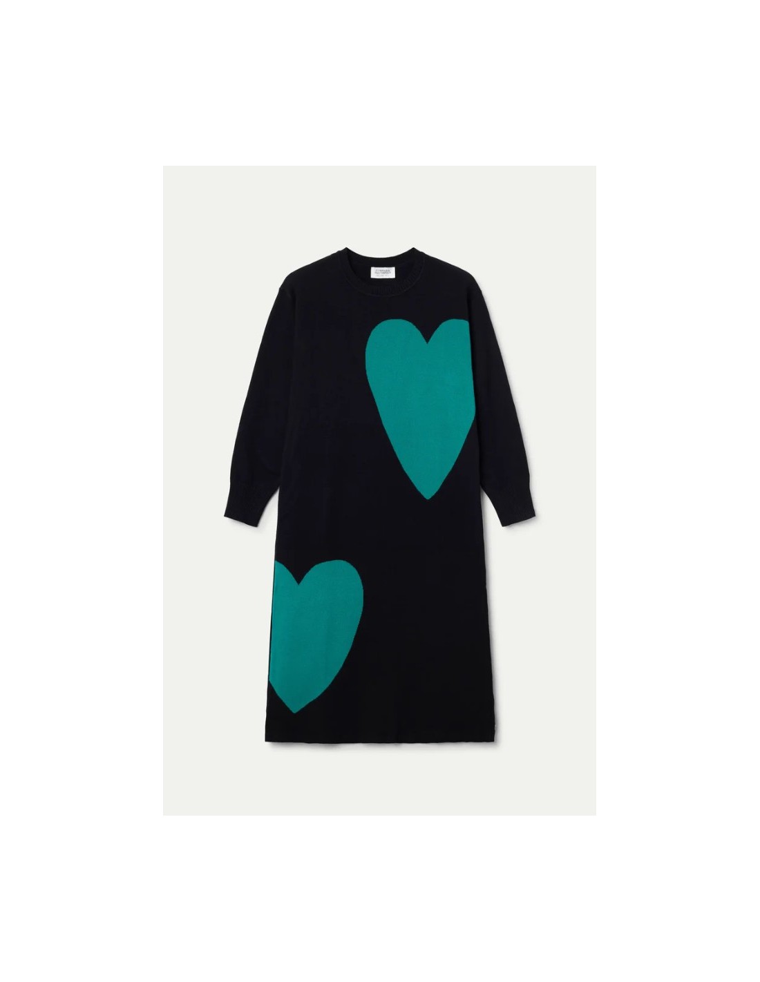 Vestido midi jacquard con estampado Super Green Heart. Con cuello redondo y manga larga. Hombro ligeramente caído.